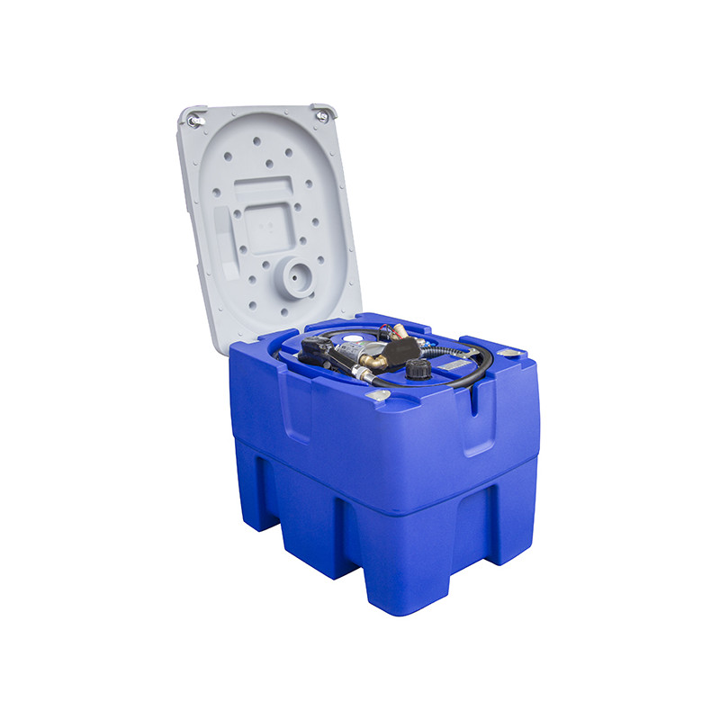 Högdensitetspolyeten tank för transport av dieselbränsle för eget bruk med ADR 1.1.3.1C. Utrustad med självsugande vingpump, tankslang av NBR gummi och ett automatiskt tankhandtag med svivlad anslutning.