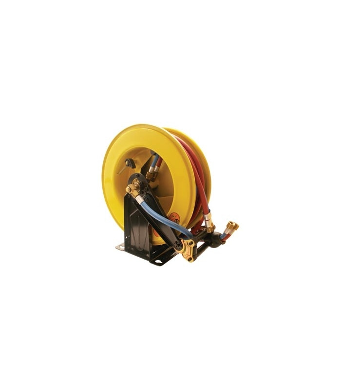 Vinda med fjäderretur gjord för distribution av gasol, propan & metan.Slang i enlighet med ISO3821. Utrustad med anslutningsslang, skyddskåpor & 4-hjulsstyrning.