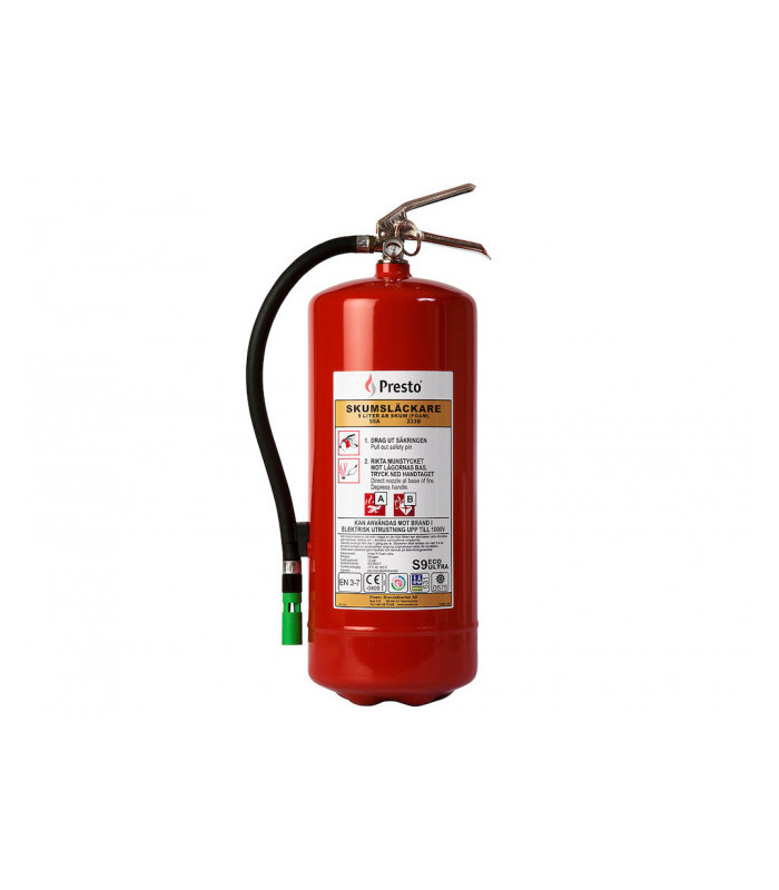 Brand i material som skumsläckare fungerar bra mot är exempelvis tyg, papper, trä, plast och bildäck samt i brännbara vätskor som bensin, diesel eller liknande. På ställen där man vill undvika nedsmutsning vid släckning, såsom kontor, offentliga lokaler eller industrier är en släckare med skum som släckningsmedel lämplig. Skumsläckarna från Presto har en avstängningsbar ventil samt är tryckladdade vilket gör att skummet kommer direkt när säkerhetsprinten dragits ut samt handtaget tryckts ned. Släckaren har Milieukeur-märkning för hållbara produkter.