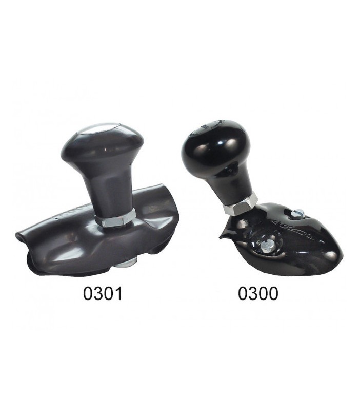 Rattknopp i universalmodell med stabila metalfästen som fästs på rattringen. Finns i två varianter, för rattdiameter upp till 24 mm, alternativt upp till 28 mm.