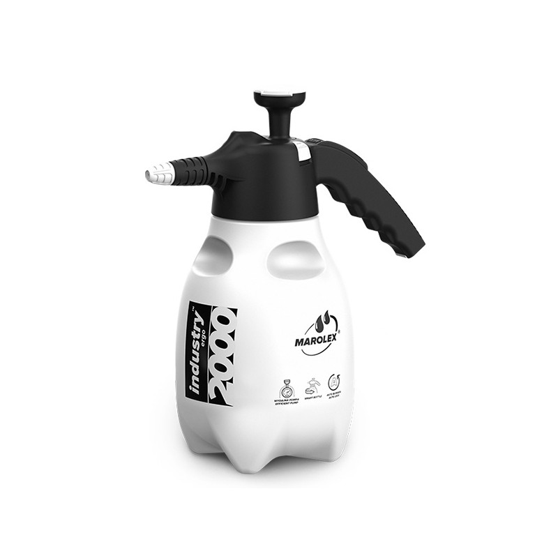 Kemspruta med behållare, särskilt lämplig för avfettningsmedel och andra rengöringmedel. Ställbar spraybild. Utrustad med handpump försedd med tätningar av Viton och avluftningsventil. <