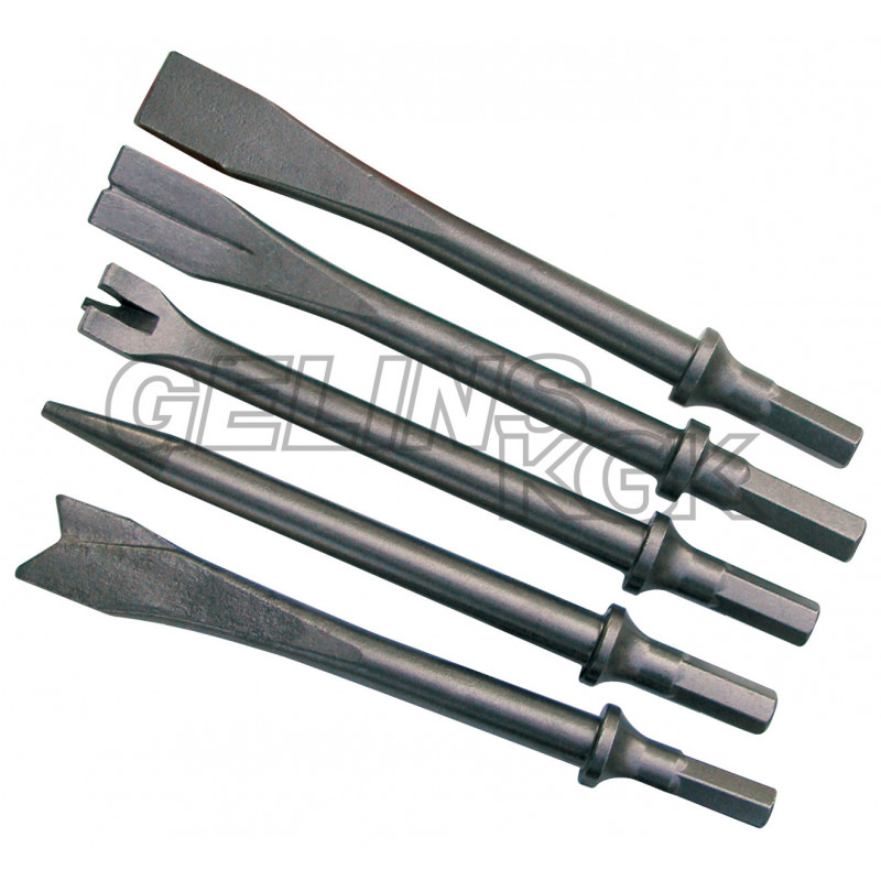 Mejselsats Fem mejslar i en plastficka. 10,2 mm runt skaft. Passar till: Mejselhammare (4233120) Mejselhammare (4233122) Mejselhammare (4233330) Mejselhammare (4233335)