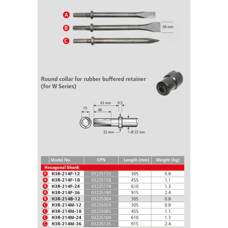 Standard-duty mejselhammare Längre slaglängd för att klara de tuffaste jobben. Kraft och hastighet kan regleras med avtryckaren. Inbyggd strypventil. Perfekt för att ta av en bult.