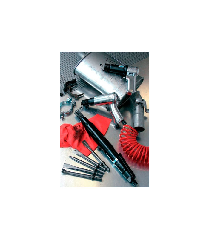 Nålhacka för rensning av svetsfogar, betongytor etc. från lättare slagg. Levereras med tre olika mejslar och tre satser med nålar i olika längder i kraftig väska.