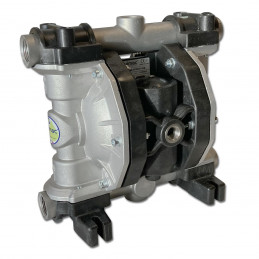 Beskrivning Luftdriven Membranpump Från Italienska Fluimac. För motorolja / spillolja. Membran: Hytrel + PTFE, rostfria kulor Hölje: Aluminium