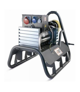 Traktordrivet elverk. Varvtal 1500 v/min för kontinuerlig drift med kuggväxel i oljebad. Utrustad med belastningsskydd, voltmeter, amperemeter, frekvensmätare samt jordfelsbrytare. Generatorn tål överbelastning 3 x märkströmmen under 20 sekunder för start av större motorer. Monterad på en helgalvad ram. Borstlös synkrongenerator med AVR reglering.