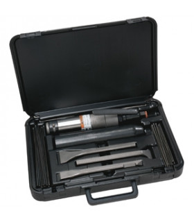 Nålhacka för rensning av svetsfogar, betongytor etc. från lättare slagg. Levereras med tre olika mejslar och tre satser med nålar i olika längder i kraftig väska.
