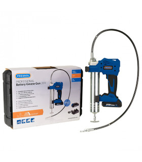 Kraftfull & robust, tekniskt avancerad batteridriven fettspruta med 2 st flödeshastigheter. Utrustad med LCD-display som visar fettnivå i gram eller uns, samt batteriladdning och fyllnadsgrad i tuben. Levereras med 1 st 2Ah 20V Litium-batteri & batteriladdare (230v) i en stadig väska. 1 batteri räcker till 24st tuber. Sprutan är även utrustad med...