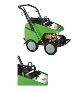 Högtryckstvätt utrustad med tvåhjulig vagn, handtag och antivibrationsfötter. Högpresterande kolvpump med vevstakessystem. Automatisk by-pass ventil. Tryckjustering. Termisk ventil. Inbyggt tvättmedelssug. Drivs av Honda-motor med sensor för låg oljenivå. Inspekterbara oljenivåer. Utloppspluggar och utloppsöppningar för att underlätta underhållet och...