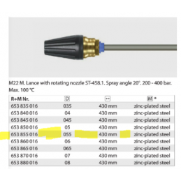 Max 320 bar. Turbokiller med rostfri stållans. Max vattentemperatur 80˚C Anslutningsgänga: snabbkoppling D12. Längd: 1000 mm
