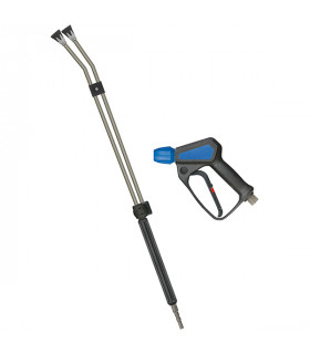 Högtrycksmunstycke tillkommer beroende på flöde och tryck. Lågtrycksmunstycke ingår. Med sidohandtag. Anslutning: D12 Längd: 1000 mm