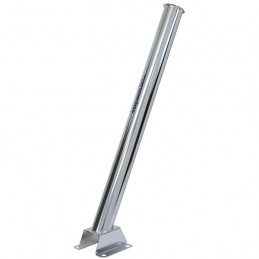 Beskrivning Lanshållare för golvmontage i rostfritt stål. Rörlängd: 730 mm Rördiameter: 60 mm Rördränering: 28 mm