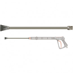 Lans av rostfritt stål med isolerhandtag. FLATSTRÅLEMUNSTYCKE Vår rekommendation för rengöring av känsliga ytor. Flatstrålemunstycket med dess konformig stråle (sprutvinkel: 25º) bearbetar ytorna särskilt skonsamt och gör det till och med möjligt att "sopa" smutsen.