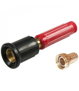 Slangfäste: 3/4"Max arbetstryck 10 bar.Vridbart gummerat munstycke, regleras från stråle till dimma.Temperaturområde: -50°C till +70°C.