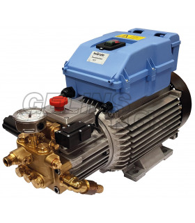 Stationär högtryckstvätt med start & stopp automatik. Endast pump/motor. Mässingshus med keramiska kolvar. Utrustad med brytare.