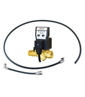 Perfekta lösningen för att dränera kompressortanken på kondens. Komplett kit. Avsedd för tankmontering. Med tidur, ställbar avluftningstid och intervall. Utrustad med filter samt avstängningskran. Anslutningskabel 3 meter, 230 volt.