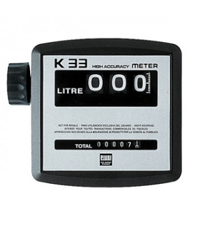 Dieselmätare K33Mekaniskt mätverk. Tresiffrig mätare som är nollställbar. Totalräkneverk som är 6-siffrigt. Felvisning ± 1%. Total räknevolym 999 l.
