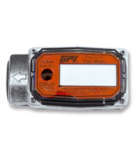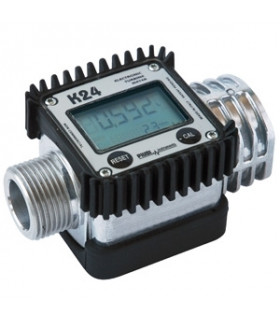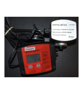 Digital mätare för diesel som kopplas direkt på slangen. Anslutningsgänga 1”. 4-siffrig LCD display. Drivs med 2 st batterier LR. Max flöde: 100 l/min. Max arbetstryck 20 bar. Arbetstemperatur: -10 till +60 °C. Mått: LxBxH 102x64x51 mm