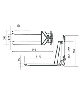 Gaffellyftvagn 2500 kg:• Kapacitet 2500 kg • Klätterhjul framför gaffelhjulet för enklare åtkomst. • Optimal manövrerbarhet med en svängvinkel på 210˚ • Passar även för lyft av 1/4 pallar • Med enkelt hjul i nylon