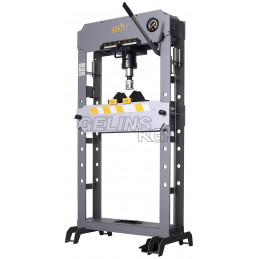 Golvmodell med hydraulisk handpump. För de flesta pressjobb. Manometer som visar presstrycket. Justerbar tryckcylinder i sidled. Levereras med 2 st riktblock.