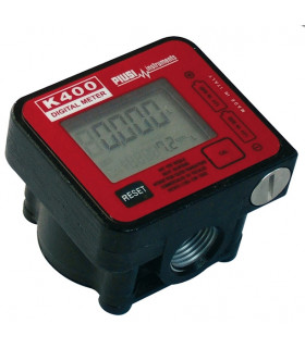 K400 Spolarvätskemätare digitalOval kugghjulsmätare med digital display. Komplett med utloppspip. Mätaren har två separata displayer, en nollställningsbar och ett totalräkneverk inte nollställningsbart.
