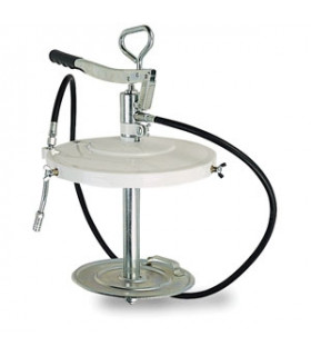 Manuell smörjpump för 12-20 kg burk komplett med 1,5 m slang, 4-backsmunstycke, fatlock 310 mm och följelock.
