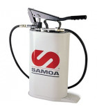 Smörjpump manuell med 16 l behållare  Handpumpad, används för smörjmedel med hög viskositet. 16 liters oval stålbehållare och 1,5 meter smörjslang med smörjmunstycke. Avgiven mängd per slag: 10, 15 eller 20 g per slag beroende på vilket läge pumpkolven är ansluten till handtaget.