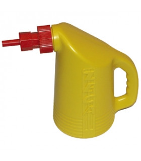 Oljemått, plast 1 liter Tillverkad av kraftig olje- och kemikaliebeständig plast. Behållaren är transparent, vilket gör det enkelt att se oljemängden. Böjlig pip, utrustad med lock för att förhindra smuts.