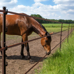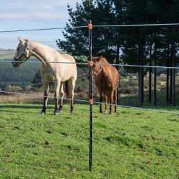 Unik och hållbar stolpe idealisk för halvpermanenta häststängsel. Bekväm stigbygel att använda för att trycka ner stolpen i marken. 11 öglor som passar band upp till 20mm, rep och polytråd. Det unika "vrid och lås" systemet garanterar en enkel och säker fastsättning av ledarna upp till 1.35m höjd.