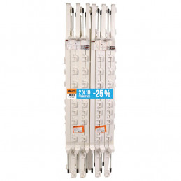 Mycket robust, lätt fjäderstålstolpe med 4 flyttbara isolatorer. Maximal stängselhöjd 87.5cm. Den 10cm långa dubbelfoten gör den enkel att montera. Vit isolerad beläggning för maximal synlighet och för att undvika kortslutningsproblem.