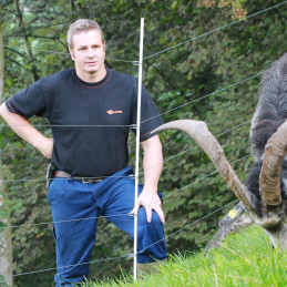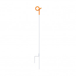Kraftig fjäderstålstolpe. Om flera trådar ska användas köper du vår isolator 010752. Maximal stängselhöjd: 0,80m.