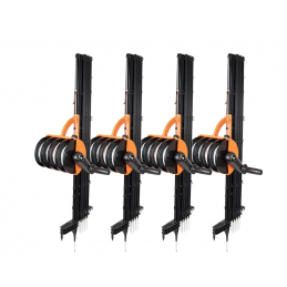 Enkelt att sätta upp 100 m fårstängsel med 4 trådar och 10 stolpar på endast 5 minuter. En flexibel och smart allt-i-ett-lösning där stolpar, tråd, spole, fästlinor och hållare ingår. Höjden är 90 cm.