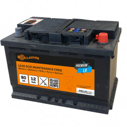 Gallagher Premium Blybatteri 12V/80Ah - 278x175x190Väljer du ett underhållsfritt batteri? Välj då Gallagher 12V PREMIUM La-batterier. Detta batteri har en längre livslängd än det vanliga 12 V-batteriet.Passar alla 12 V-elstängselaggregat och kan eventuellt kombineras med en solpanel.