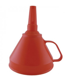 Tratt 115 mm rak, för oljeflaskorTratt för oljeflaskor av polyeten. Speciellt utformad för oljepåfyllning i motorer. En 1-liters rund oljeflaska kan hällas direkt i tratten. Trattdiameter 115 mm. Pipens diameter 32 mm. Volym 1,0 liter.