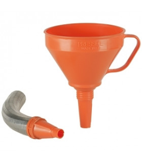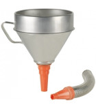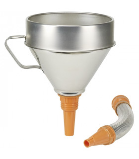 Tratt Ø 160 mm flexibel Tratt tillverkad av kraftig olje- och kemikaliebeständig plast med stänkkant och borttagbar mässingsil. Flexibelt utloppsrör och 3 munstycksdimensioner, 160 mm diameter, volym 1,3 liter.