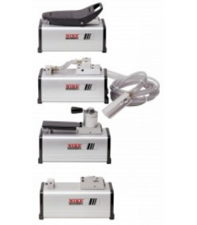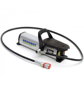 FP - försedd med fotpedal för manövrering av start/stopp och avlastning. FP, RC och MRV-modellerna har inbyggd avlastningsventil för retur av olja till tank. Siktglas möjliggör kontroll av oljenivån. Pumparna är försedda med ljuddämpare. Levereras med svivelkoppling och 2 m slang med snabbkoppling.