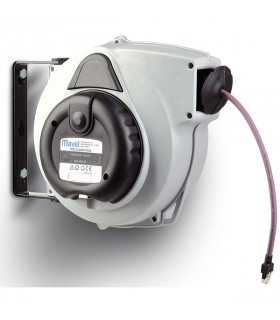 Automatiskt upprullande vinda med 15 m nätverkskabel. Svängbart väggfäste.