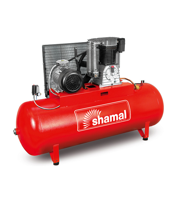 Bältesdriven oljesmord 2-stegad kompressor från Italienska Shamal. Högpresterande, lättförflyttad och avancerad luftkompressor. Stora hjul och specialdesignat handtag ger fördelar när det gäller förflyttning.