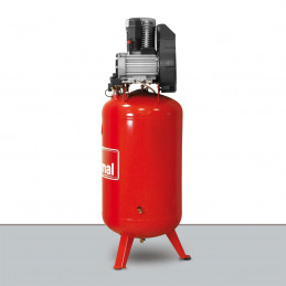 2-cylindrig, remdriven kompressor, där remskivan på kompressordelen har fläktvingar för bra kylning. Lågt varvtal. Kompressorn är utrustad med tryckströmbrytare, manometer, säkerhetsventil, reduceringsventil, snabbkoppling och hjul. Garanti 3 år mot material och fabrikationsfel.