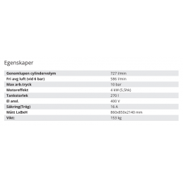 Industrikompressor för verkstadsbruk. Den är konstruerad med dubbellagrad vevaxel och med lågt varvtal som bidrar till låg ljudnivå och lång livslängd. Cylindrarna är tillverkade i gjutjärn. Hög kyleffekt genom extra stor fläkt och remskydd av trådnät. Levereras med motorskydd, säkerhetsventil, backventil, manometer och kondenskran. Är utrustad med Y-D...
