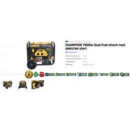 Champion 7000w Dual Fuel elverk med elektrisk start CPG7500E2