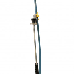 Beskrivning Lanshållare för slang. Klämma av galvaniserat stål, hållare av rostfritt stål. För slangar av diameter 16-24 mm.