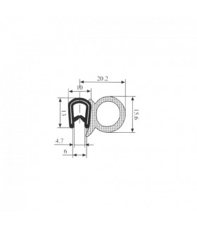 Tätningslist i EPDM. Kanttjocklek mm: 5,0-6,0. Temperaturområde -40° till +70°C. Kapas i 5 m intervaller.