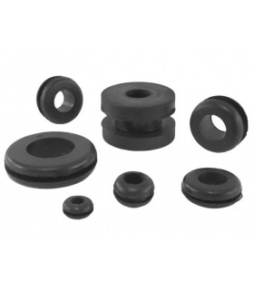 Kabelgenomföringar av SBR-gummi. Temperatur -40°C till 80°C kontinuerligt. Enkelsidigt utförande. Förpackningsstorlek: 100 st.