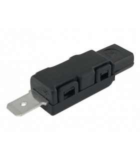 För montering i kabel med 6,3mm flatstift. IP 54. Max belastning 1A, 400V.