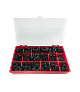 Tätar och låser, tillverkad av svart UV-beständig Kloropren. Samtliga storlekar är avsedda för 1-4 mm godstjocklek i genomföringshålet.
