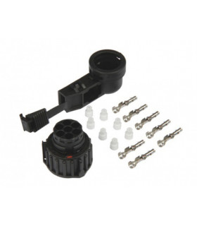 7-polig AMP-kontakt för flatstiftshylsor. Temperaturområde -40°C till +120°C. REACH-godkänd.