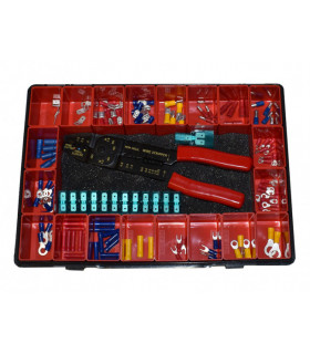 Innehåller totalt 120 st av de mest frekventa kabelskotyperna samt 1 st tång ”Hobby Crimpex”, kopplingslist och förgreningskontakt.