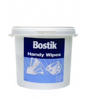 Fuktad pappersduk för rengöring av händer och verktyg. Bostik Handy Wipes är utmärkta till allmänt bruk, då de rengör händerna utan att man behöver ha tillgång till vatten och tvål. Bra att ha till hands vid smutsiga arbeten. Används också till rengöring.