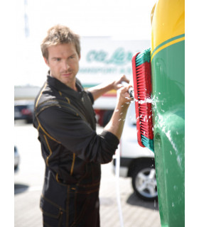 Stor fälgborste med vattengenomströmning och nylonborst. Specialborste för rengöring av fälgar på lastbilar och bussar. Med längre och mer vattenbärande borst.